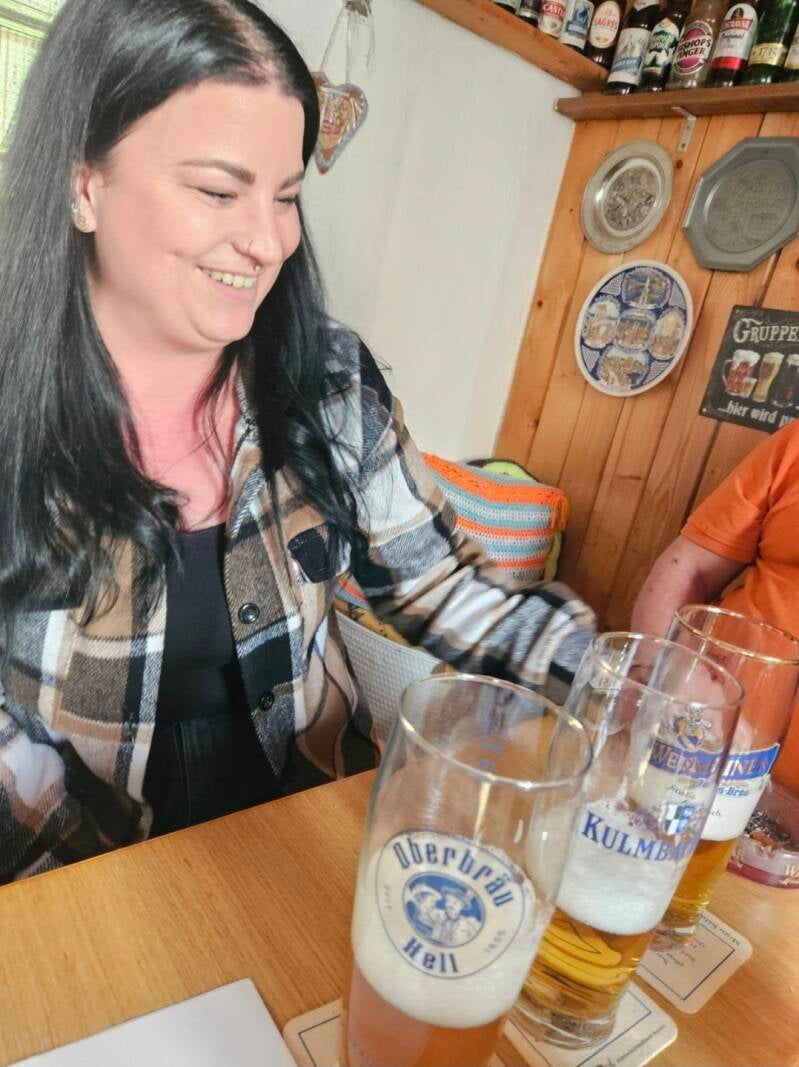 Unsere Anwärterin musste sich der großen Herausforderung stellen: Weizen, Helles und Pils – blind erkennen. Klingt einfach, ist aber der Moment, in dem selbst erfahrene Biertrinker plötzlich anfangen zu zweifeln.